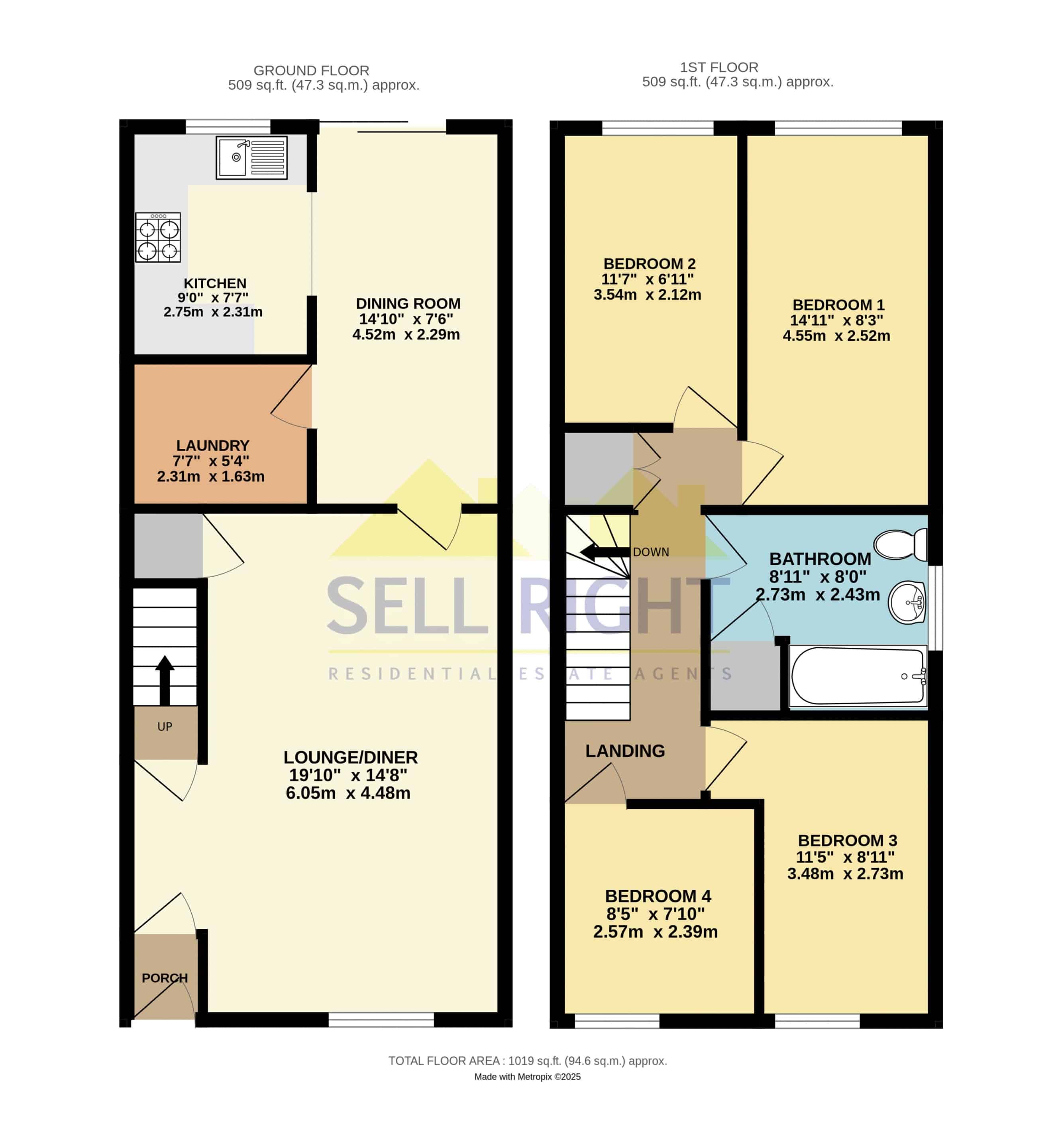 Measurements: Sell Right take great care when measuring, but these approximate room sizes are only intended as general guidance. You must verify the dimensions carefully before ordering carpets or any built-in furniture etc.