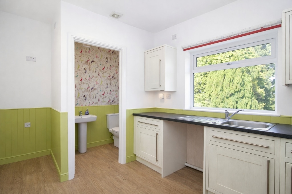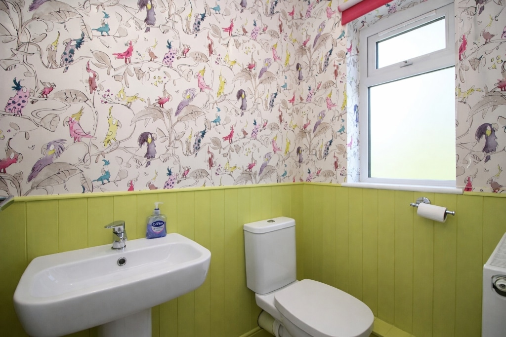 UPVC double glazed window to rear, papered and wood panelled walls, plastered ceiling, laminate flooring, radiator, W.C, wash hand basin.