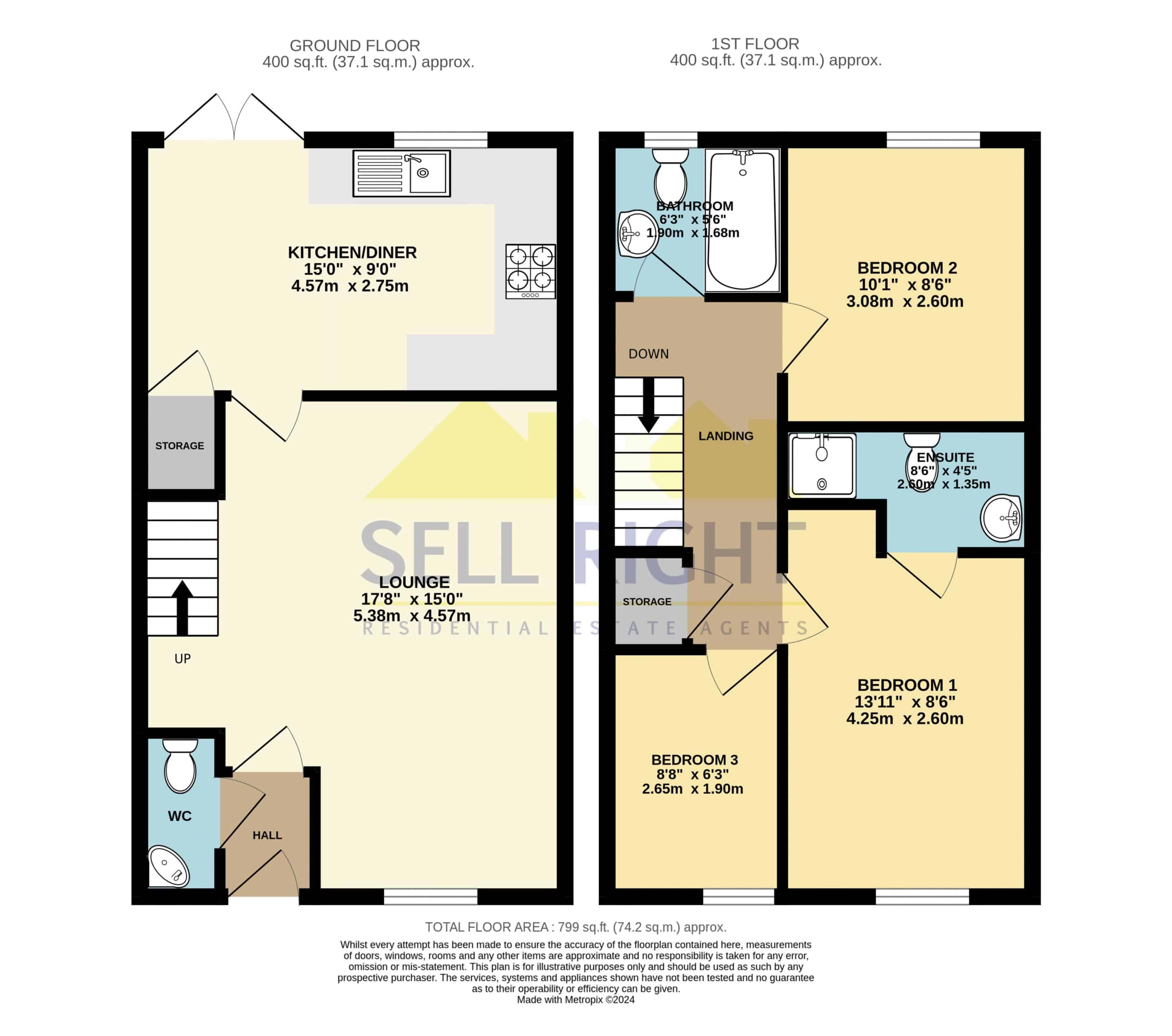 Measurements: Sell Right take great care when measuring, but these approximate room sizes are only intended as general guidance. You must verify the dimensions carefully before ordering carpets or any built-in furniture etc.
