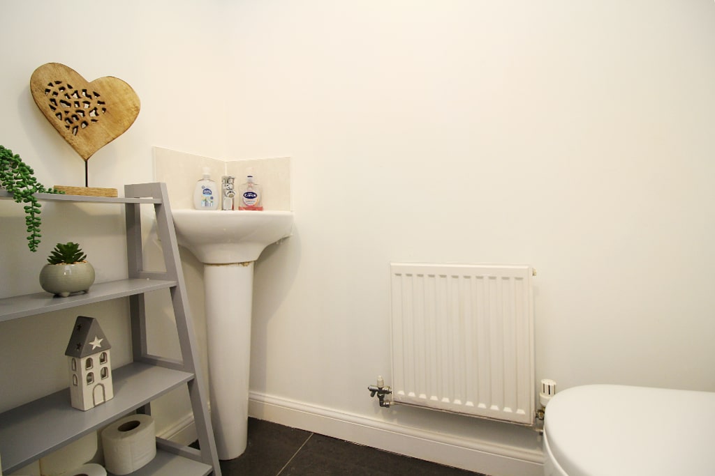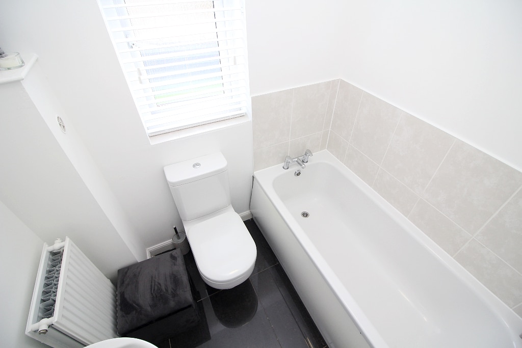 UPVC double glazed window to rear, plastered and tiled walls, plastered ceiling, tiled flooring, radiator, W.C, wash hand basin, panelled bath.