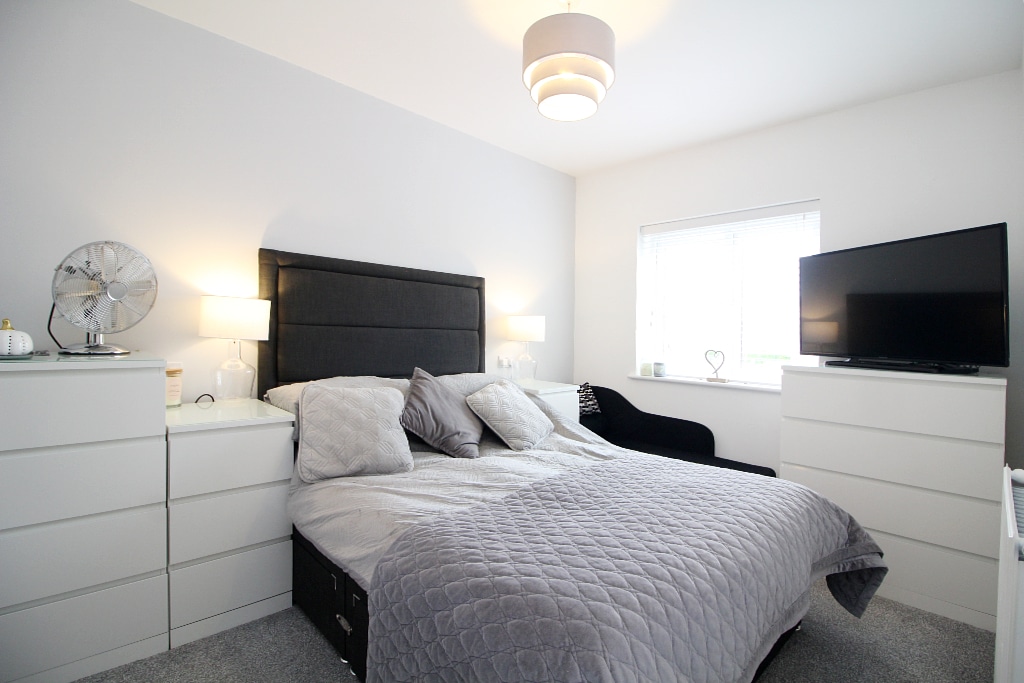 UPVC double glazed window to front, plastered walls and ceiling, carpet flooring, radiator, door to en-suite.