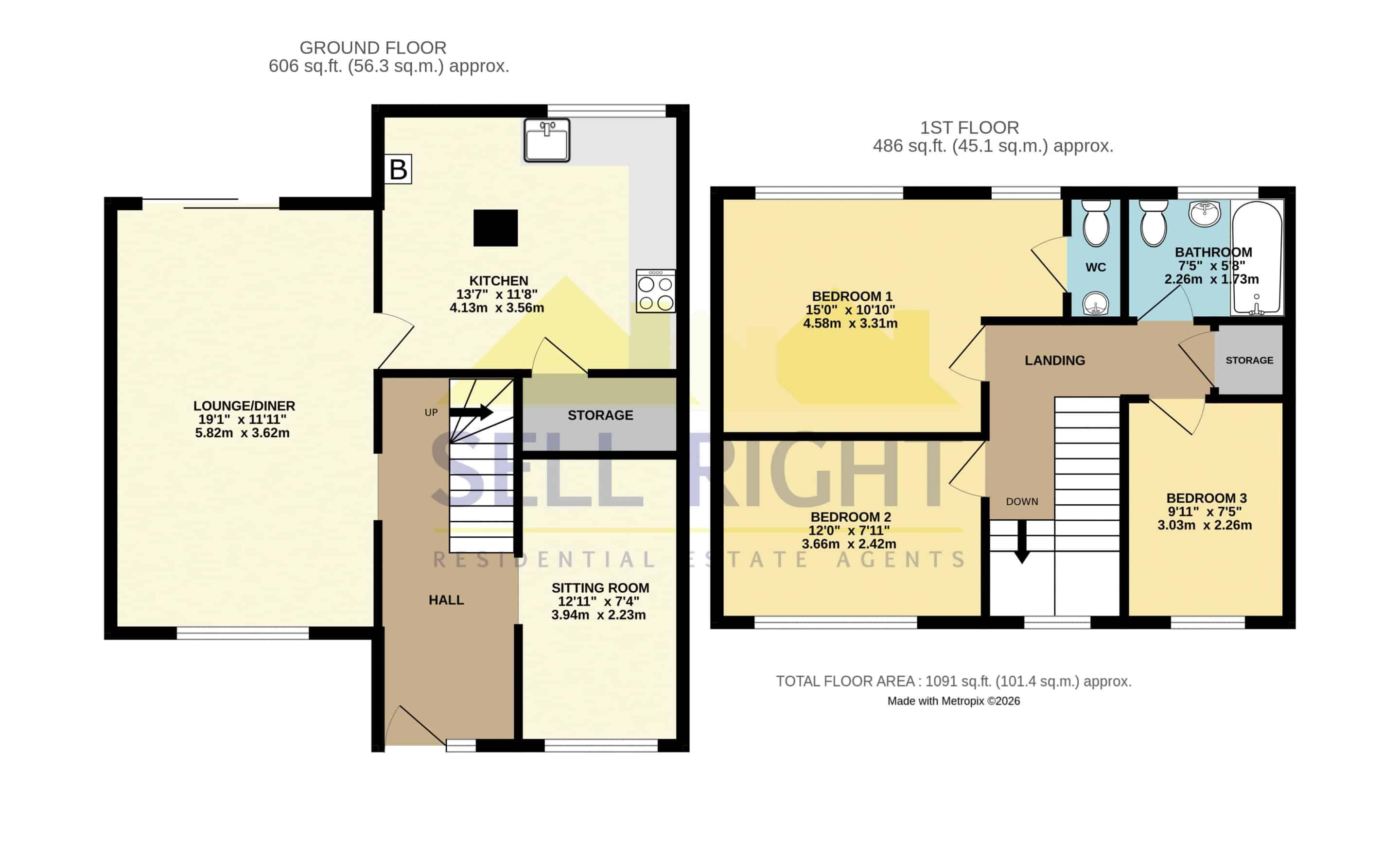 Measurements: Sell Right take great care when measuring, but these approximate room sizes are only intended as general guidance. You must verify the dimensions carefully before ordering carpets or any built-in furniture etc.