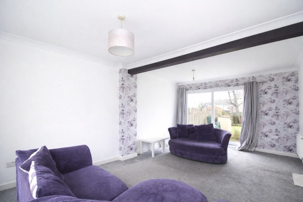 UPVC double glazed window to front, UPVC double glazed doors to rear, plastered and papered walls, carpet flooring, radiator, door to kitchen.