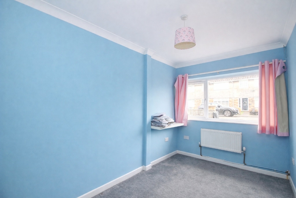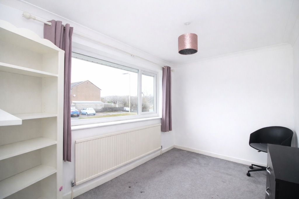 UPVC double glazed window to front, plastered walls and ceiling, carpet flooring, doors to bathroom, three bedrooms and built in storage.