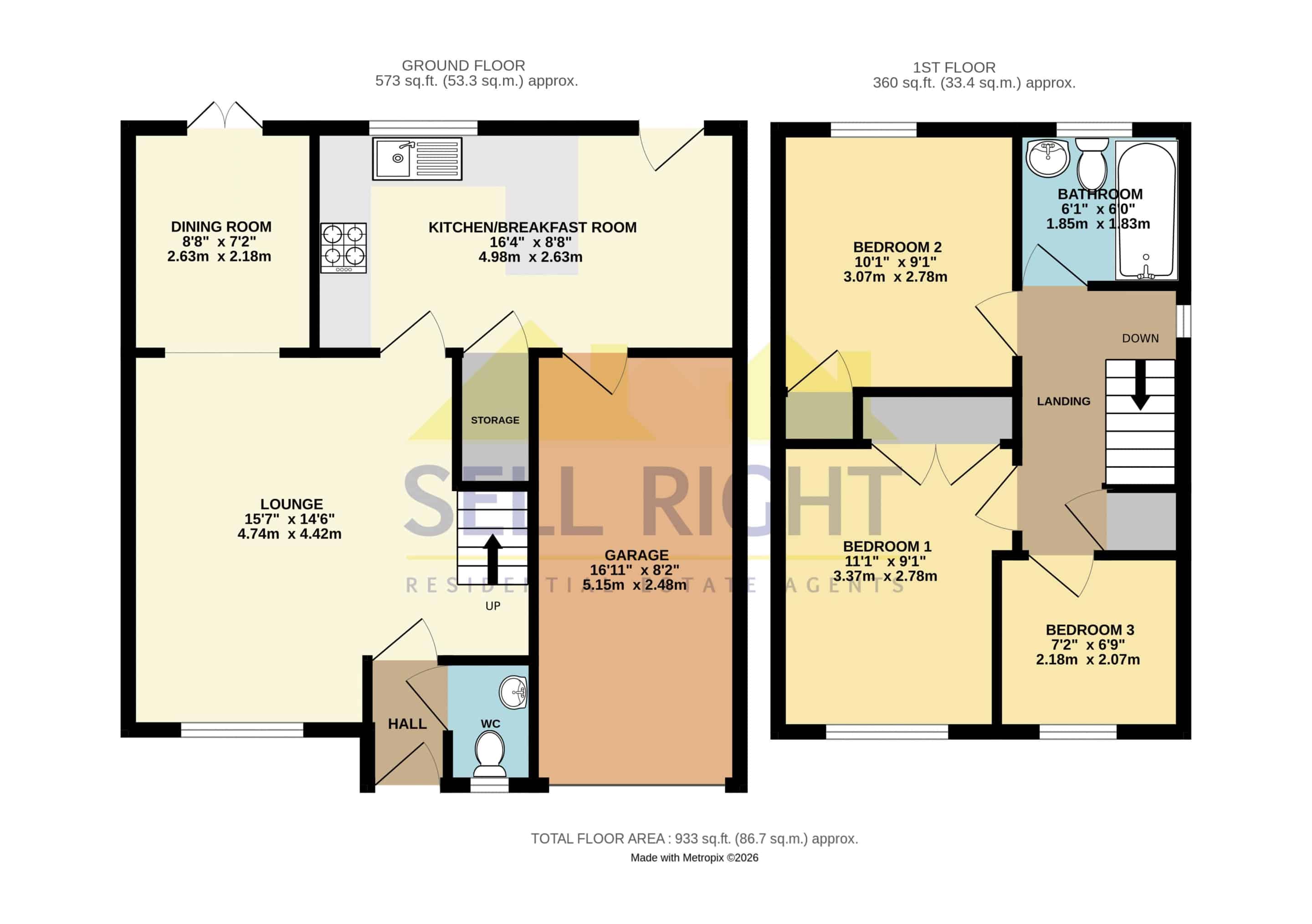 Measurements: Sell Right take great care when measuring, but these approximate room sizes are only intended as general guidance. You must verify the dimensions carefully before ordering carpets or any built-in furniture etc.