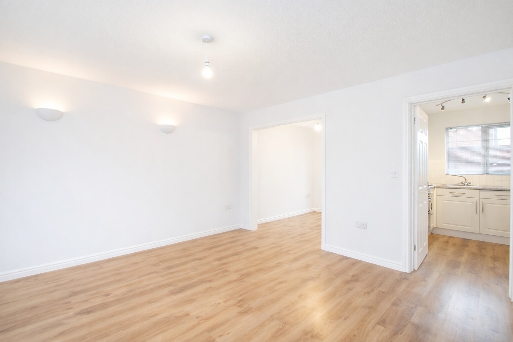 UPVC double glazed window to front, plastered walls, textured ceiling, laminate flooring, radiator, opening to dining room, door to kitchen/breakfast room.