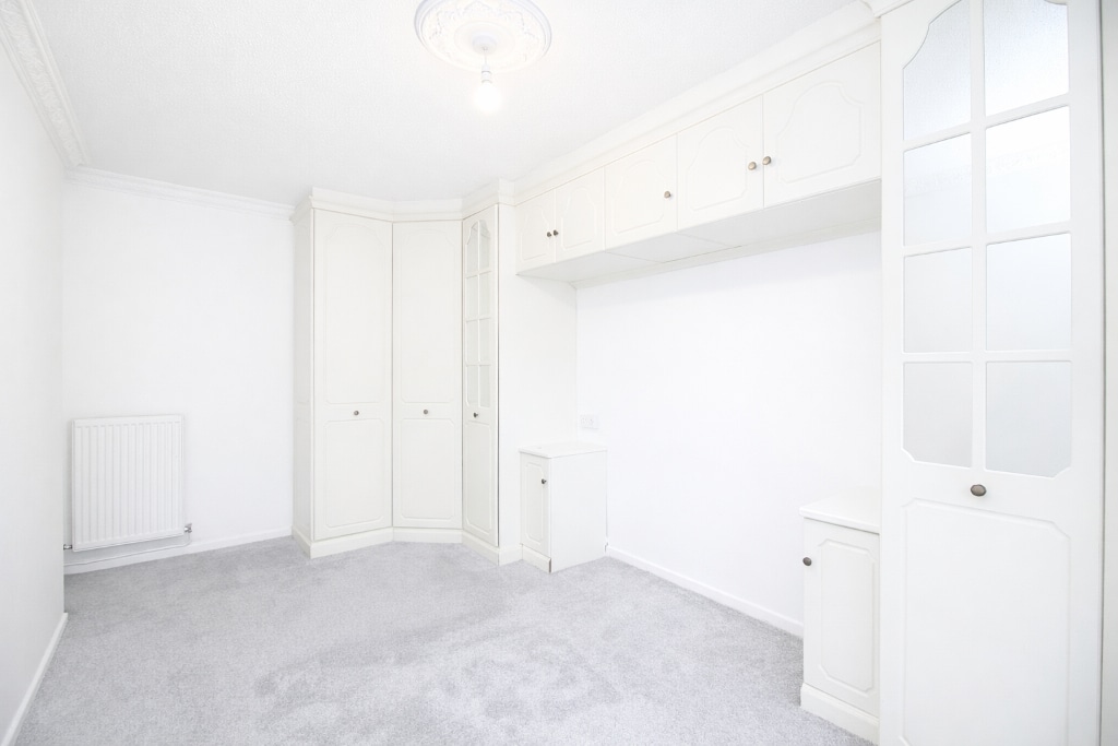 UPVC double glazed window to rear, papered walls, textured ceiling, carpet flooring, radiator, opening to built in storage.