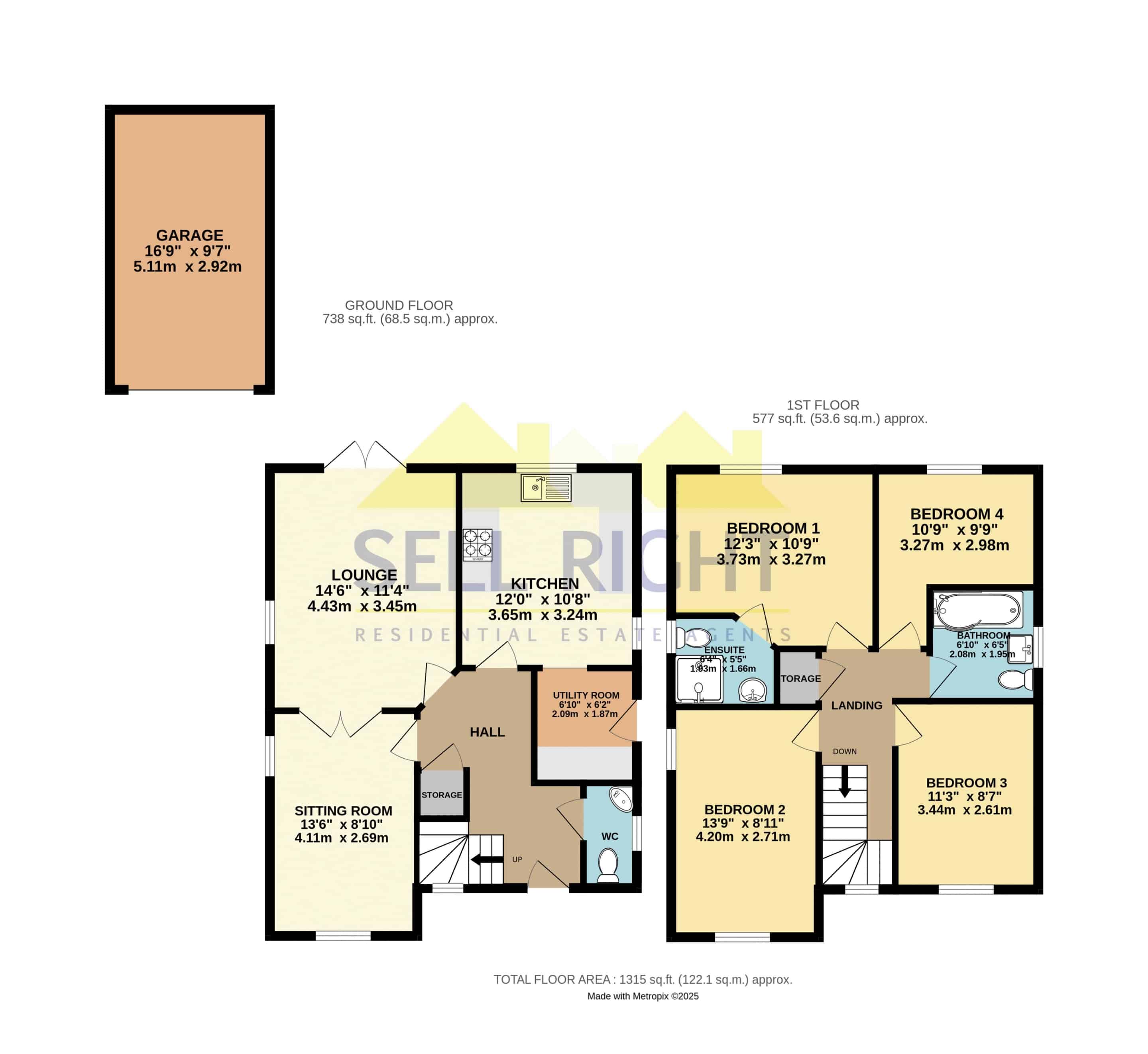 Measurements: Sell Right take great care when measuring, but these approximate room sizes are only intended as general guidance. You must verify the dimensions carefully before ordering carpets or any built-in furniture etc.