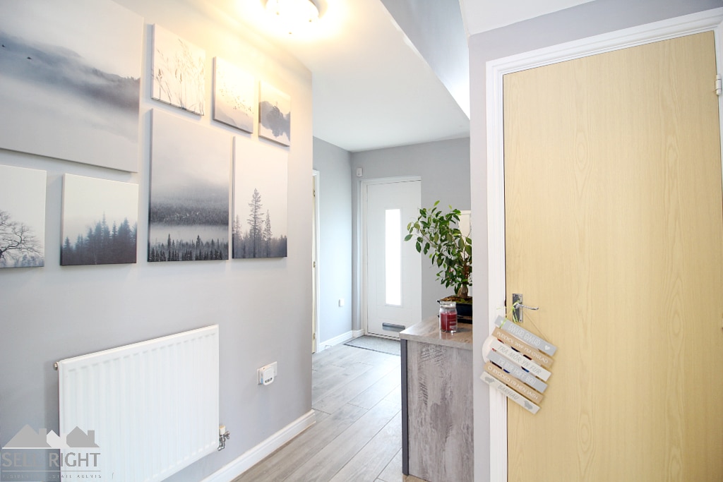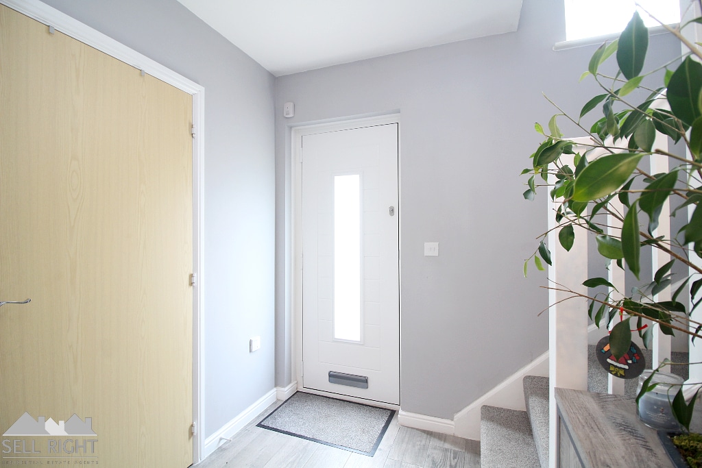 Double glazed composite door to front, UPVC double glazed window to front, plastered walls and ceiling, tiled flooring, radiator, doors to downstairs W.C, lounge, sitting room, kitchen and under stairs storage.
