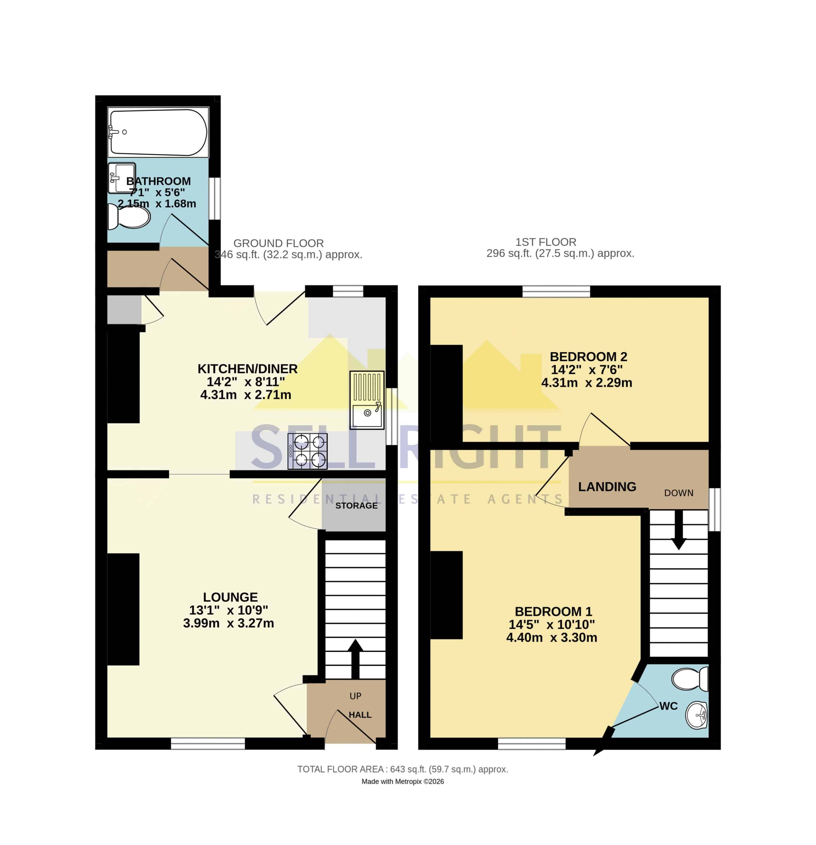 Measurements: Sell Right take great care when measuring, but these approximate room sizes are only intended as general guidance. You must verify the dimensions carefully before ordering carpets or any built-in furniture etc.