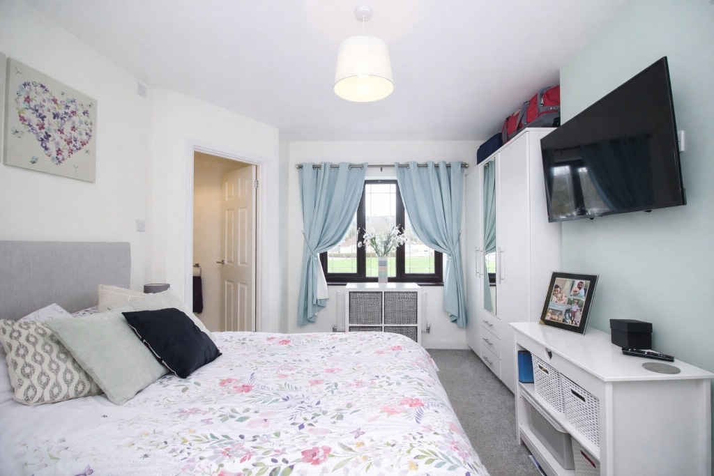 UPVC double glazed window to front, plastered walls and ceiling, carpet flooring, radiator, door to en-suite W.C.