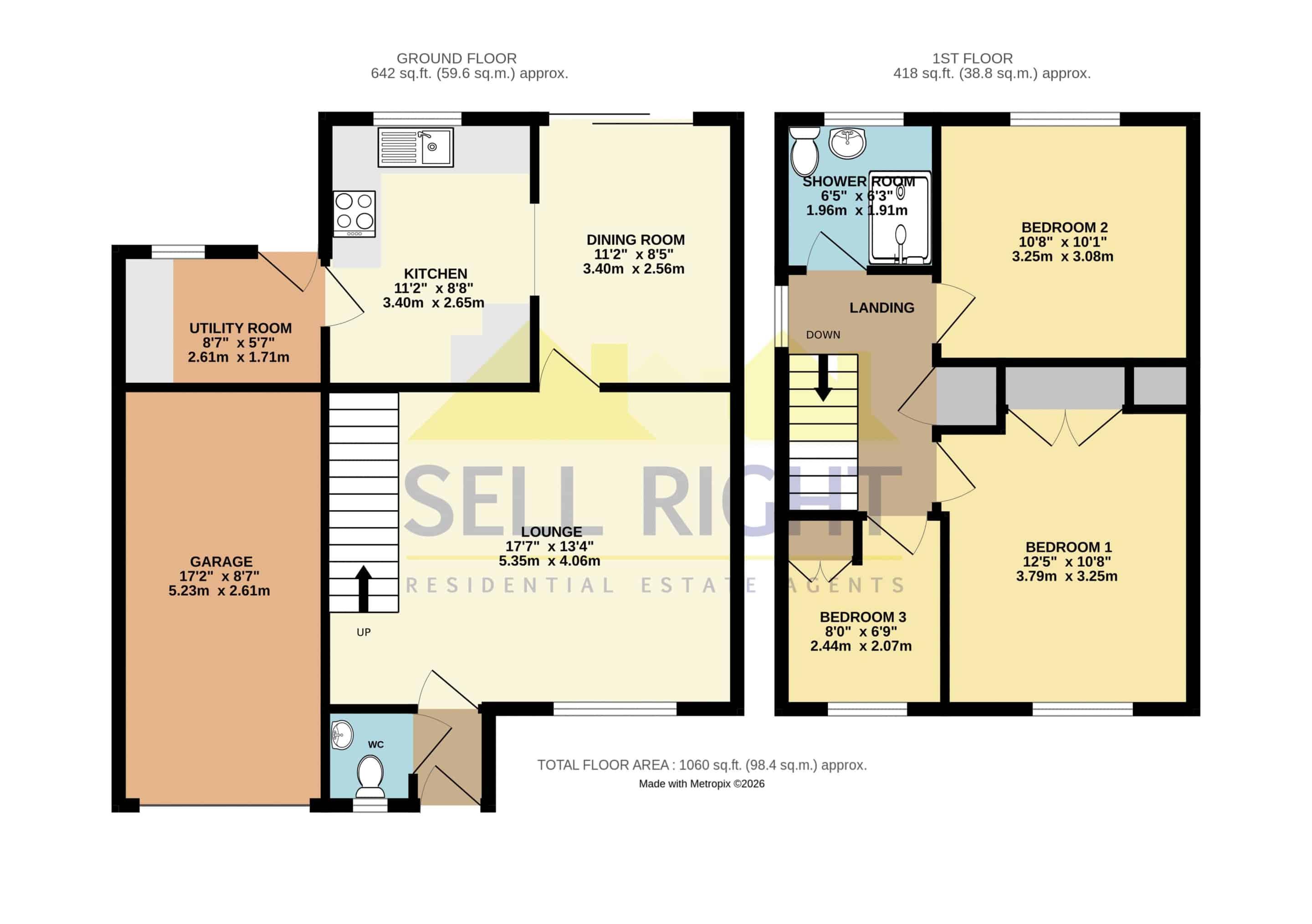 Measurements: Sell Right take great care when measuring, but these approximate room sizes are only intended as general guidance. You must verify the dimensions carefully before ordering carpets or any built-in furniture etc.