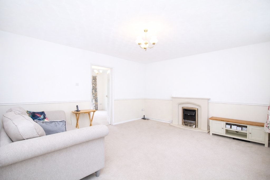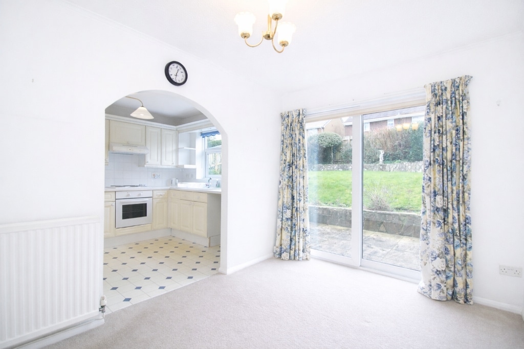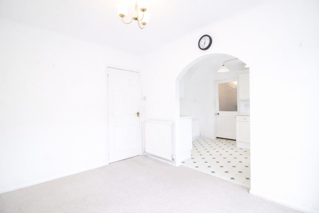 UPVC double glazed sliding door to rear, papered walls, textured ceiling, carpet flooring, radiator, opening to kitchen.