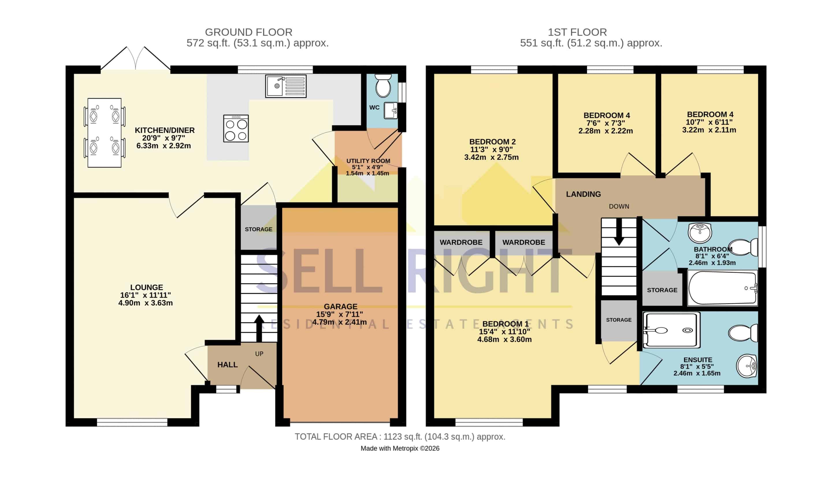 Measurements: Sell Right take great care when measuring, but these approximate room sizes are only intended as general guidance. You must verify the dimensions carefully before ordering carpets or any built-in furniture etc.