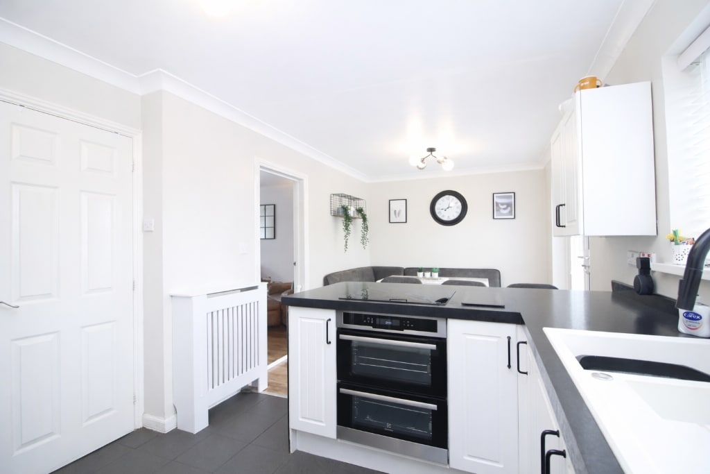 UPVC double glazed window and doors to rear garden, plastered walls and ceiling, laminate and tiled flooring, wall and base units with laminate work tops, sink unit with mixer tap, integrated oven and hob, space for fridge/freezer, doors to under stairs storage and utility room.
