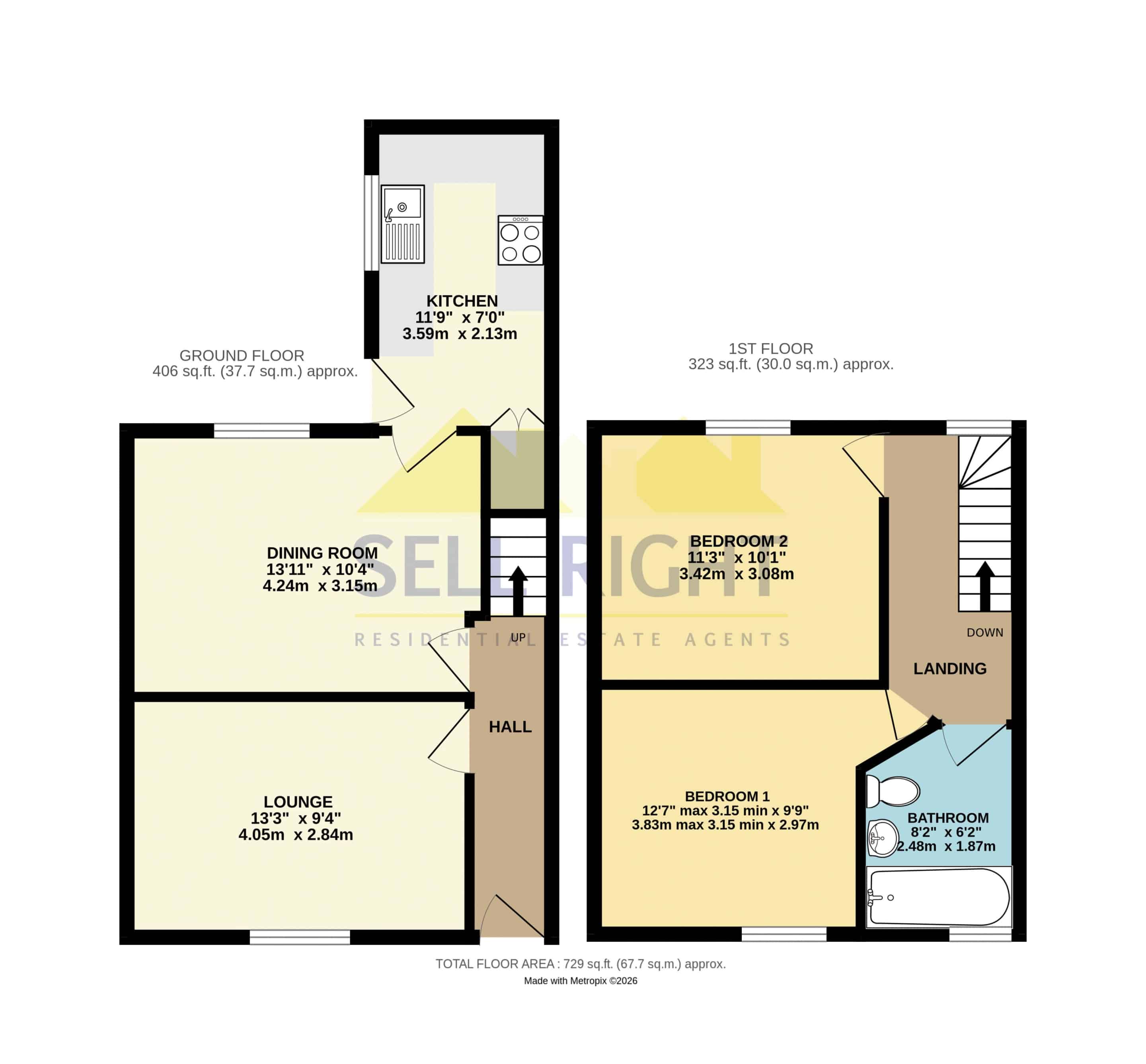 Measurements: Sell Right take great care when measuring, but these approximate room sizes are only intended as general guidance. You must verify the dimensions carefully before ordering carpets or any built-in furniture etc.