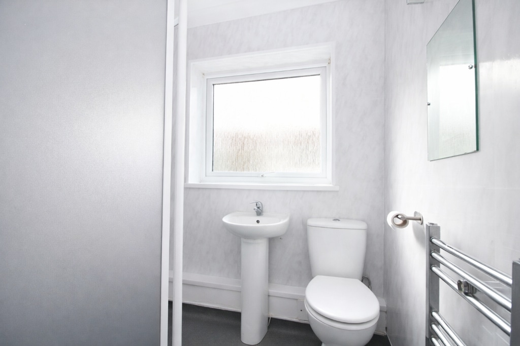 UPVC double glazed window to side, PVC panelled walls, plastered ceiling, non slip flooring, W.C, wash hand basin, walk in shower.